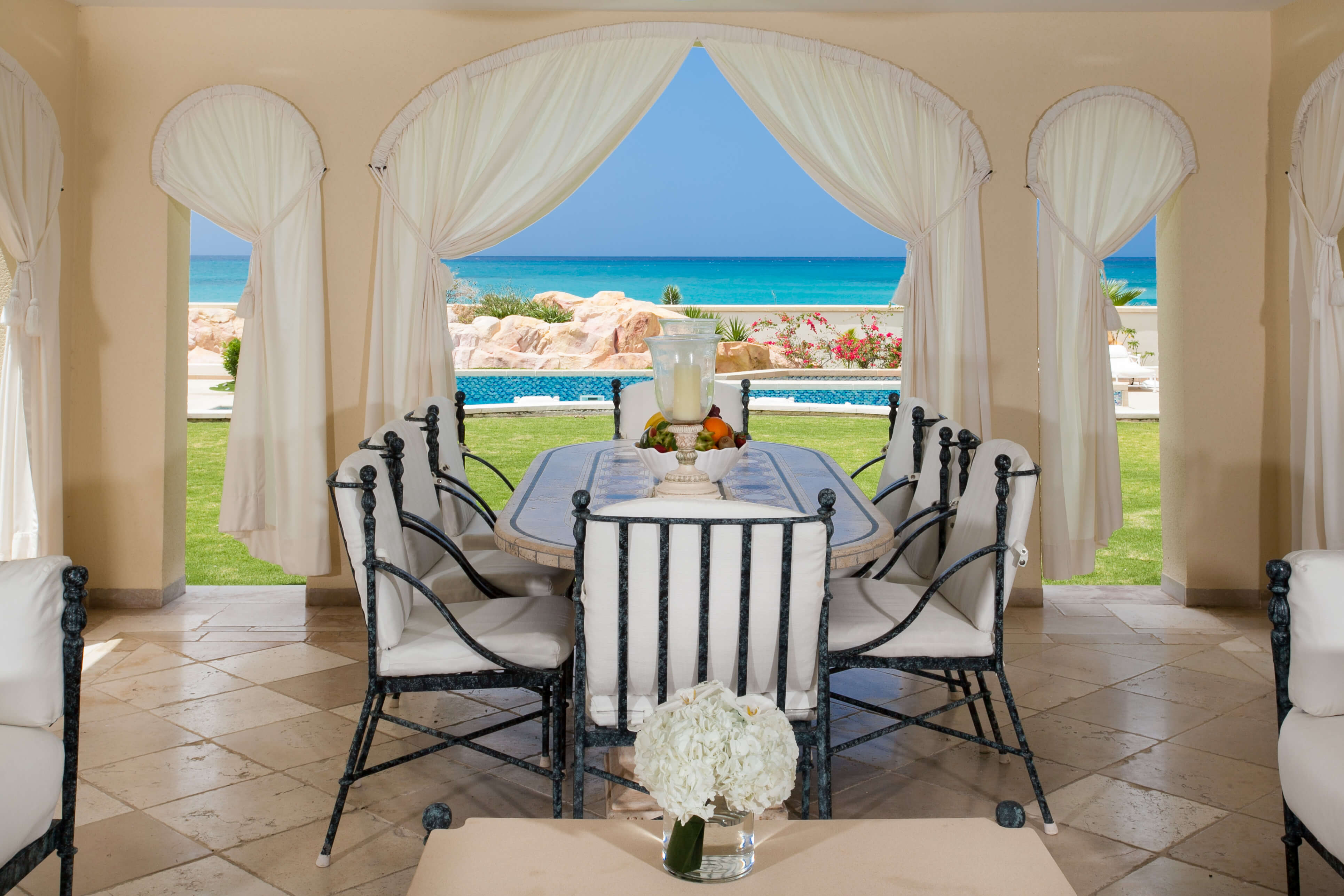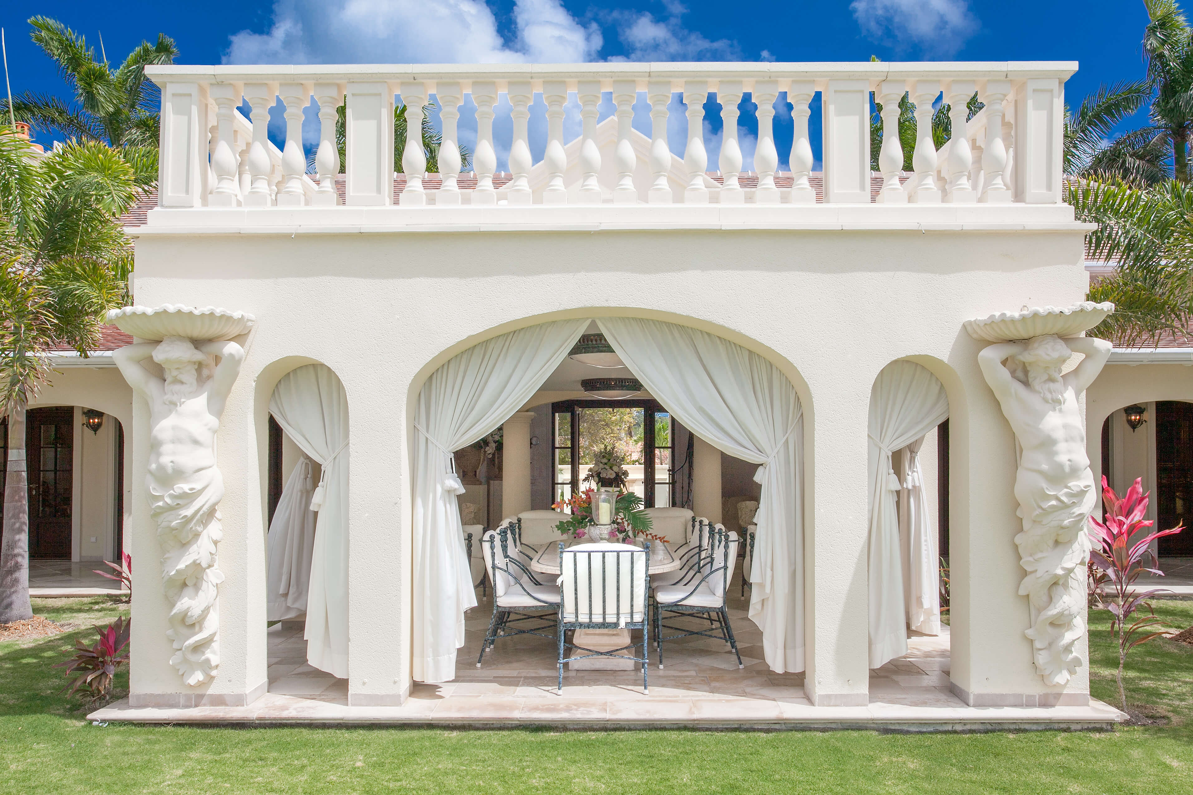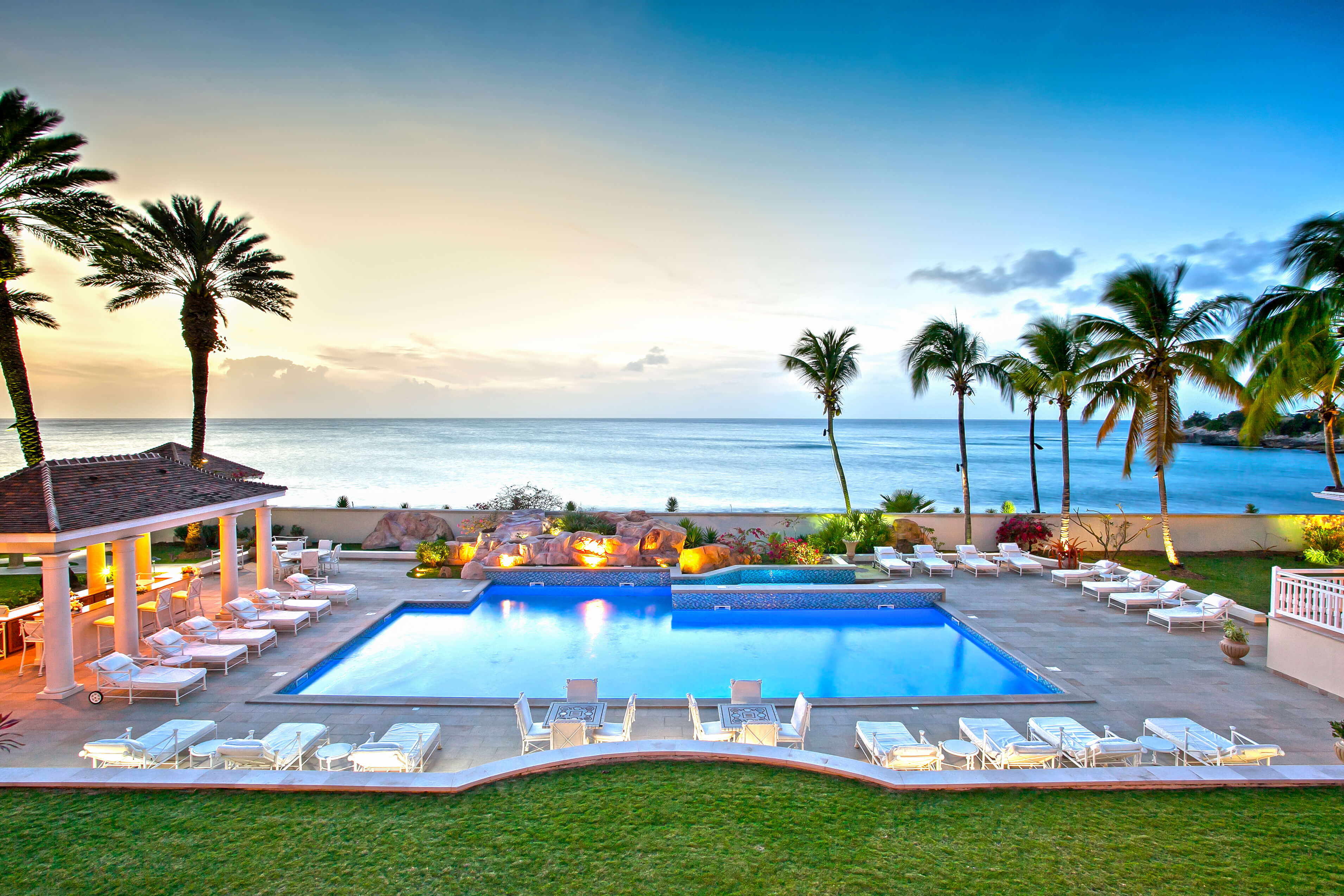 Bought in 2013 by Donald J. Trump, and located in Terres Basses in French St. Martin, Chateau des Palmiers is a breathtaking beachfront estate in an exclusive gated enclave. With a 6 -bedroom ocean side villa and a 4 bedroom garden side villa, the chateau is perched on the beach of Plum Bay, known for its white sand and perfectly rolling waves. The landscaped grounds enhance the elegantly designed villas, with a spectacular heated pool, a tennis court, fitness centers, spa, and dining areas. Every amenity is provided, making this a full service private resort. To ensure complete privacy and safety, there is a state of the art security system, surveillance cameras and an 8 ft. boundary wall. Ideally situated, Chateau des Palmiers is close to Marigot, the capital of the French side of St. Martin, and within 10 minutes from the island’s international airport.