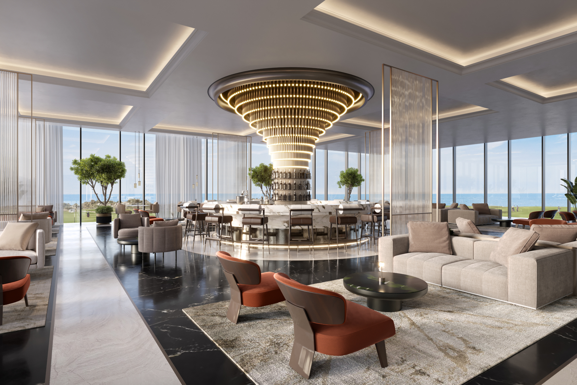 Designed to complement the golfing lifestyle, the resort features a training academy and a members-only club with exclusive amenities, perfect for networking and social events. The Cliff Hanging Night Club in AIDA, a groundbreaking first in the Middle East, provides an unparalleled setting for bespoke events and unforgettable celebrations. Additional amenities include various F&B outlets, banquet and meeting facilities, and an expansive spa.