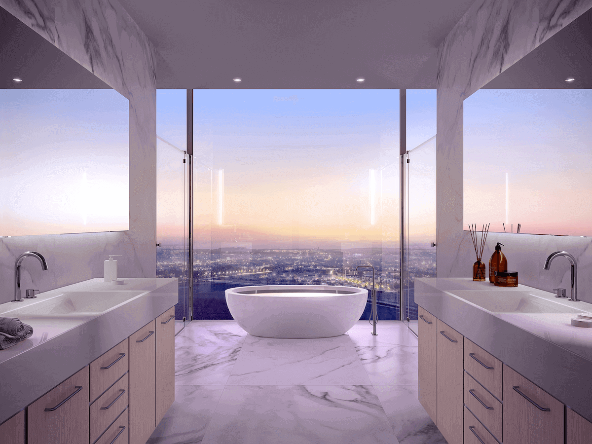 Trump Towers Delhi-NCR will be characterized by iconic twin towers rising over 600 feet that will be amongst the tallest towers in the region. The striking all glass façade is a signature Trump style with sleek lines and an imposing form. Design is at the core of the residences with every room featuring expansive floor-to-ceiling windows, flooding each residence with natural light and providing spectacular views of the city, adjoining 9-hole golf course and the Aravalis Range.